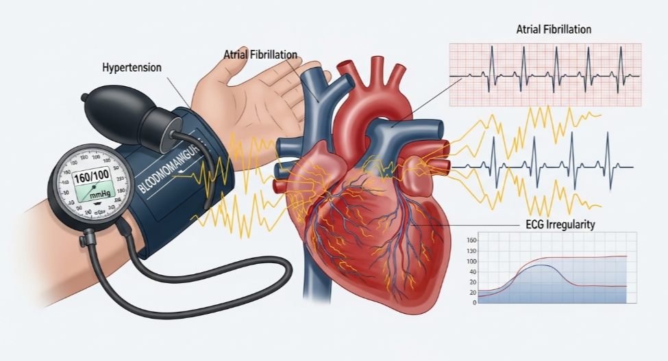 최근 건강검진 결과에서 ‘고혈압’ 판정을 받는 분들이 많습니다. 하지만 고혈압 기준이 정확히 무엇을 의미하는지, 그리고 고혈압이 심방세동 같은 부정맥과 어떤 연관이 있는지는 잘 모르는 경우가 많습니다.