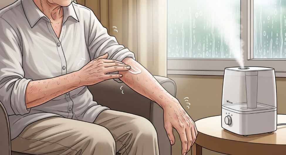 나이가 들수록 피부의 천연 보습인자(NMF)와 유분(피지) 분비가 줄어듭니다. 그 결과 피부 장벽이 약해지고, 수분이 쉽게 증발하여 피부가 땅기고 가려움이 심해집니다. 특히 겨울철 난방기 사용은 피부를 더욱 건조하게 만듭니다.